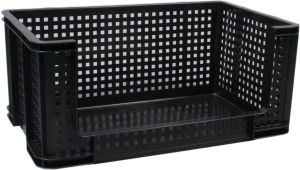 - En PP recyclé Avec ouverture avant Empilable, très solide Coins arrondis 100 % recyclable Ft 71 x 44 x 31 cm (l x p x h), contenu: 64 l, noir
