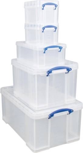 - En plastique rigide transparent Couvercle se fermant avec 2 clips, protégeant ainsi le contenu contre la poussière et la saleté Parfaitement empilable, avec ou sans couvercle Fond égal et renforcé Contenu du paquet: 1 x boîte de rangement de 64 litres - Ft extérieur: 710 x 440 x 310 mm (L x l x H) - Ft intérieur: 605 x 370 x 280 mm (L x l x H) 1 x boîte de rangement de 35 litres - Ft extérieur: 48 x 39 x 31 cm (L x l x H) - Ft intérieur: 37 x 31 x 28 cm (L x l x H) 1 x boîte de rangement de 9litres - Ft extérieur: 39,5 x 25,5 x 15,5 cm (L x l x H) - Ft intérieur: 33,5 x 21 x 14 cm (L x l x H) 2 x boîtes de rangement 3 litres - Ft extérieur: 24,5 x 18 x 16 cm (L x l x H) - Ft intérieur: 19 x 14,3 x 12 cm (L x l x H) 100 % recyclable